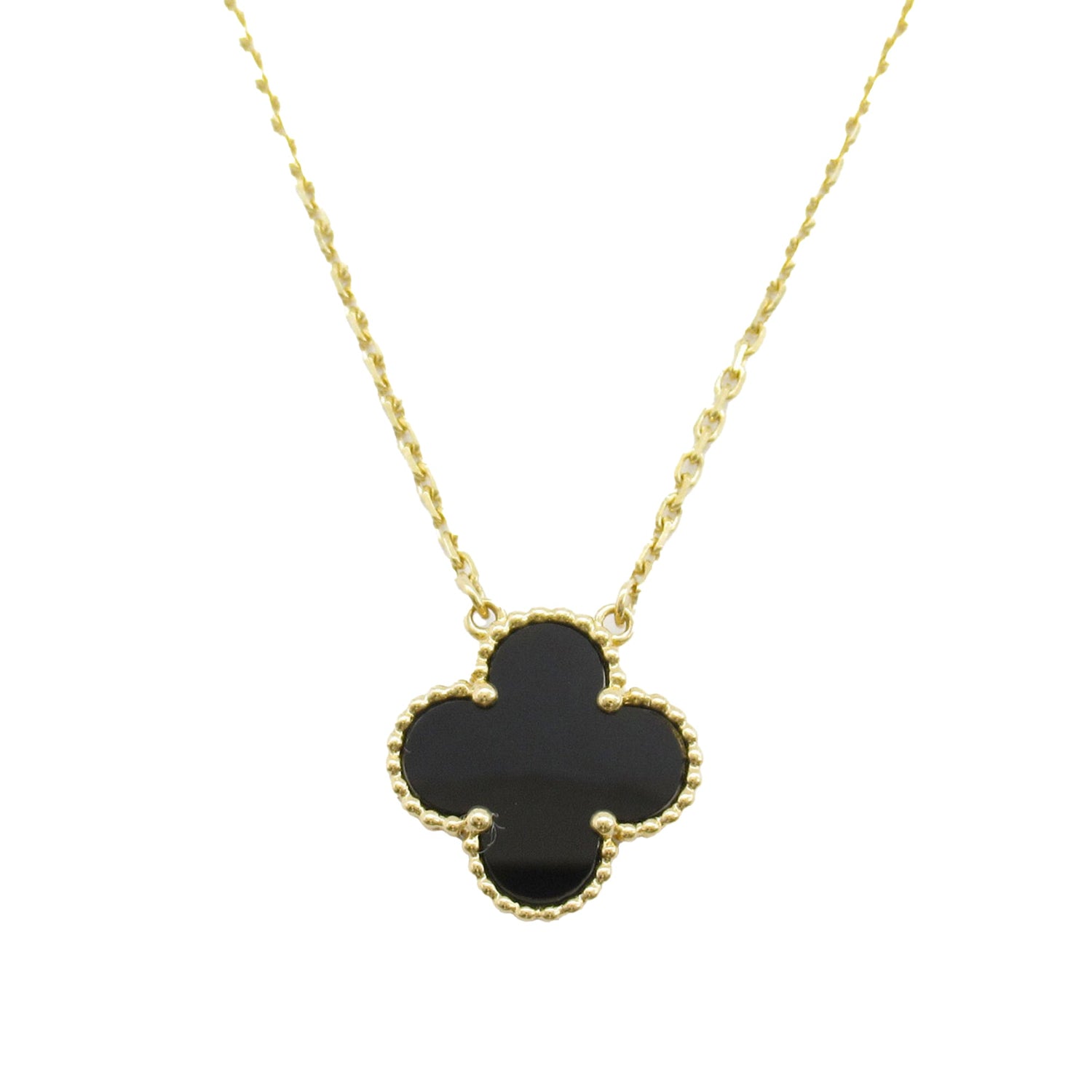 Van Cleef and Arpels 18K Yellow Gold and Onyx Vintage Alhambra Pendant Necklace
